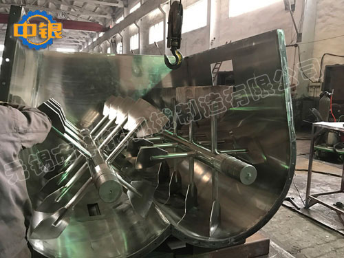 該機在w形的混合室內(nèi)裝有一對以相反方向旋轉(zhuǎn)的軸,在每個軸上安裝具