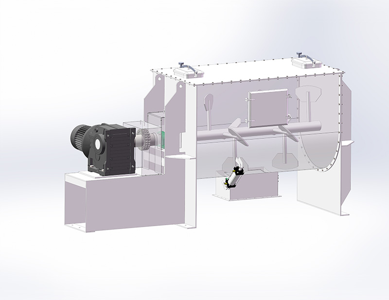 該機(jī)由傳動(dòng)機(jī)械,臥式筒體,犁刀和飛刀組等四部份組成。旋轉(zhuǎn)的飛刀強(qiáng)烈拋散,在犁刀和飛刀的復(fù)合作用下,從而在極短的時(shí)間內(nèi)達(dá)到均勻的混合。